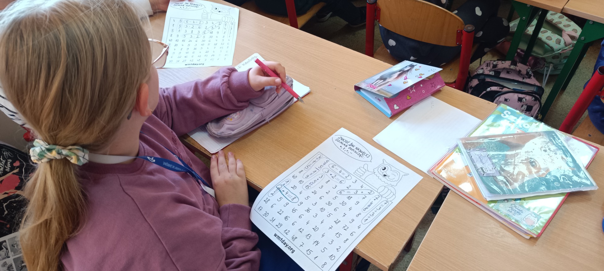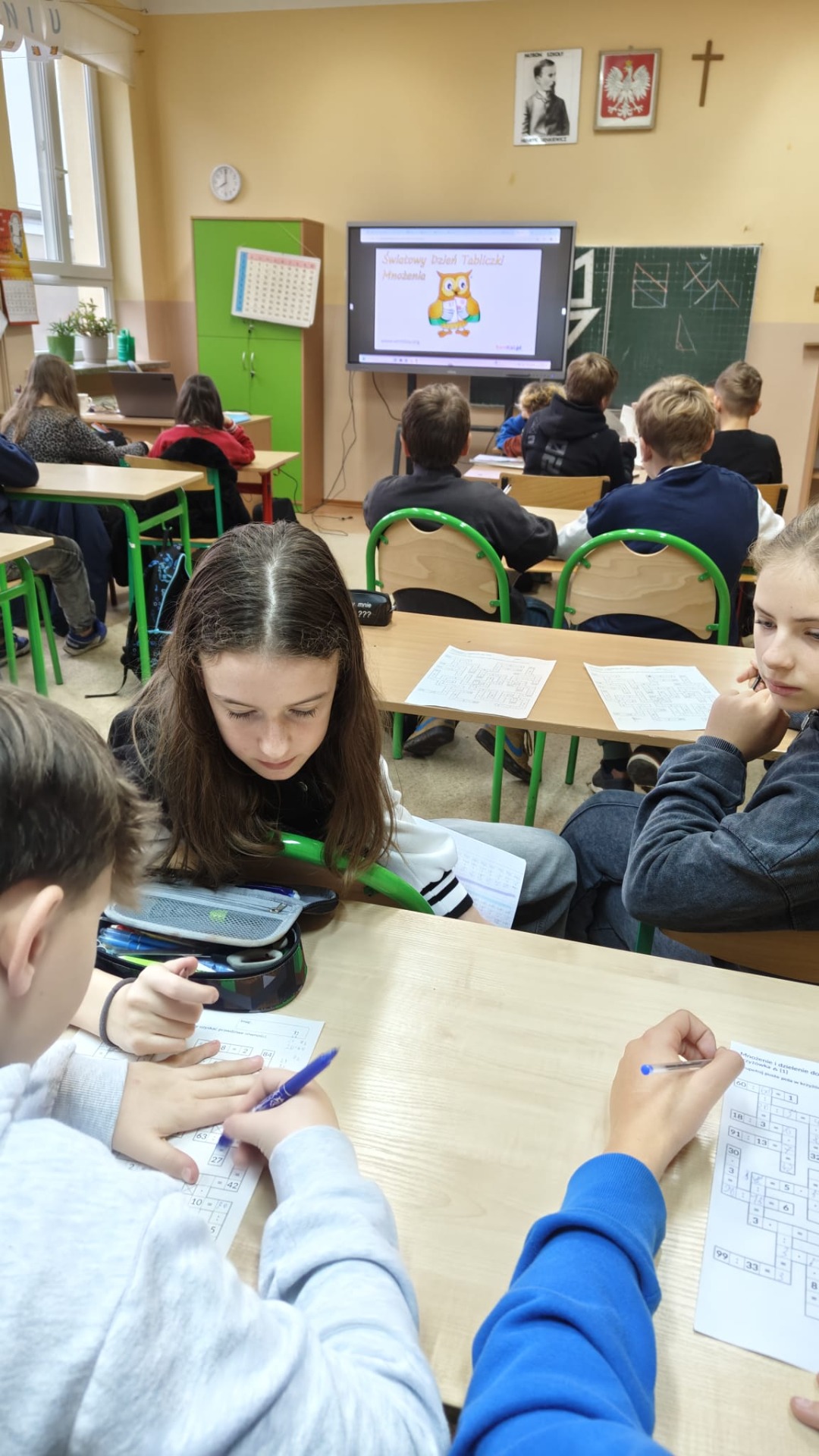 W tygodniu od 17 do 21 listopada tabliczka mnożenia towarzyszyła uczniom na wszystkich zajęciach – nie tylko matematyce. Na zakończenie tygodnia, w Światowy Dzień Tabliczki Mnożenia, uczniowie rozwiązywali stacje zadaniowe – zestawy różnorodnych wyzwań rozmieszczonych na korytarzach. W klasach zostali wybrani Mistrzowie Tabliczki Mnożenia.